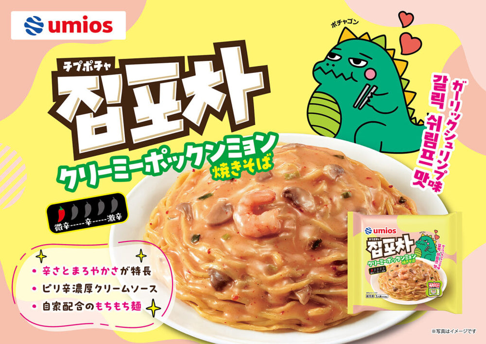 濃縮ミルクをベースにチーズや相性の良い香辛料を合わせた濃厚なソースを、自家配合のもちもちとした麺に合わせたピリ辛クリーム焼きそばです。