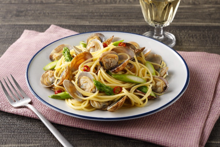 解凍後そのままお召し上がりいただけます。表面が白く見えますが、これは、あさりのエキスです。 |